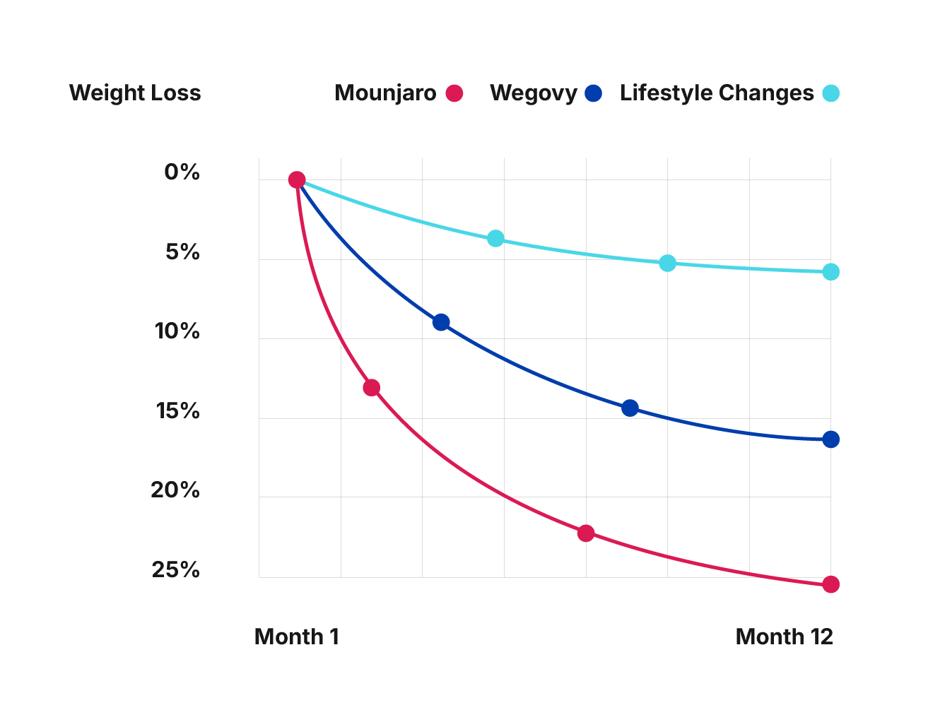 Choosing the right, effective weight loss treatment depends on your goals, medical history, and starting body weight. Both Wegovy and Mounjaro deliver weekly injections that result in noticeable progress, typically from body weight after 12 weeks onward. For some, weight loss can be achieved in even less time when combined with diet and exercise.